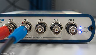 Im Labor Digitale Signalverarbeitung beschäftigen sich die Studierenden in praktischen Versuchen u.a. mit den Themen Abtastung analoger Signale, Auto- und Kreuzkorrelation zeitdiskreter Signale sowie dem Entwurf digitaler Filter. Zusammen mit vorbereitenden Matlab-Übungen vertiefen die Studierenden in diesen Laborübungen ihre in der Vorlesung erlangten Kenntnisse zu diesen Themenfeldern.