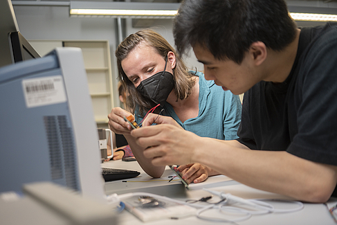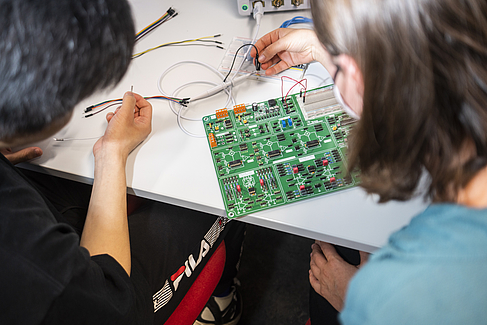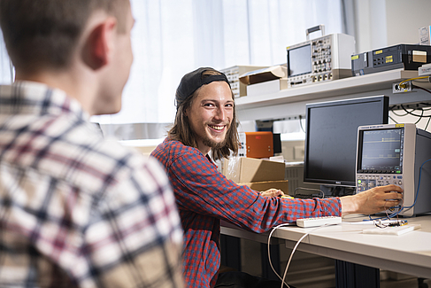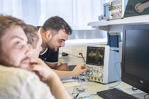 Angehende Absolvent_innen der IKT beschäftigen sich in praxisnahen Übungen unter anderem mit der Signalformung, der Digitalisierung analoger Signale, analogen und digitalen Modulationsverfahren sowie mit dem Verhalten von Übertragungskanälen und Multiplexverfahren, bei denen mehrere Signale gebündelt über ein Medium übertragen werden. Außerdem werden die Studierenden in die Handhabung von Simulationssoftware wie Matlab / Simulink oder Python eingeführt.