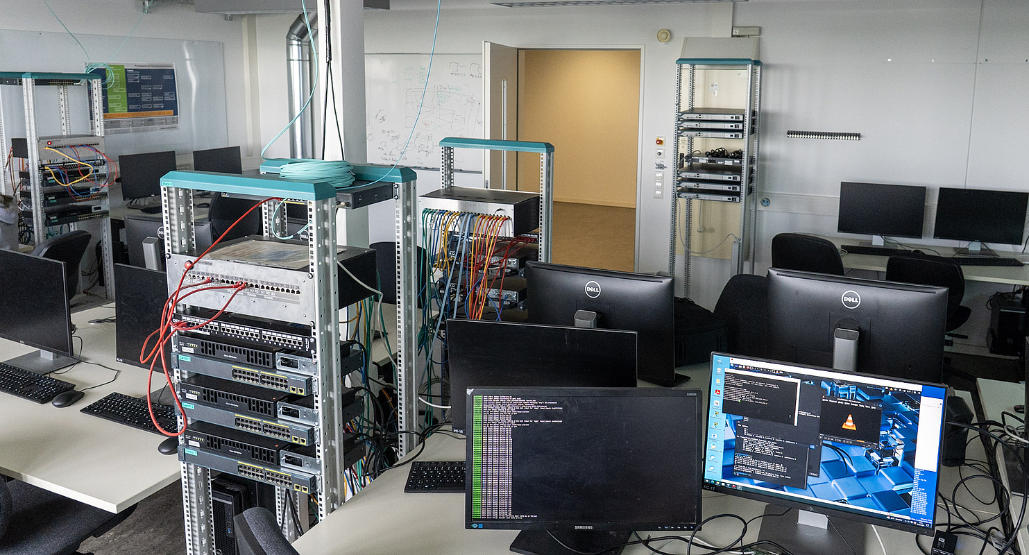 Im Labor werden verschiedene Abschluss- und Forschungsarbeiten betreut. Die Forschungsschwerpunkte liegen dabei im Bereich der Netzwerksicherheit, Netzwerkautomatisierung, Sensornetze und Network Softwarization.